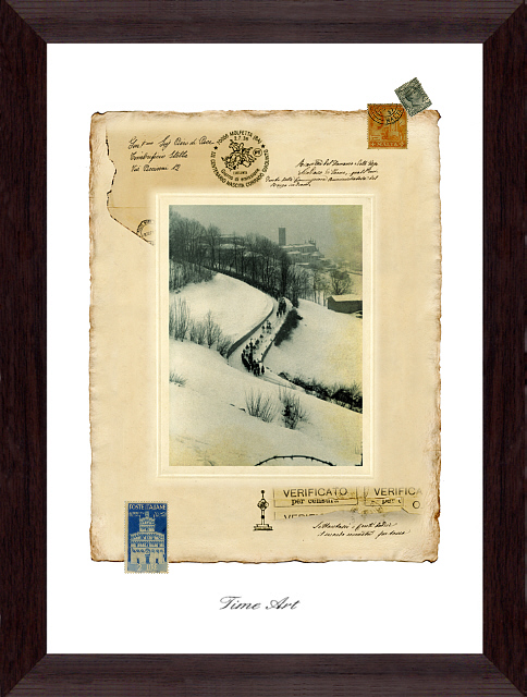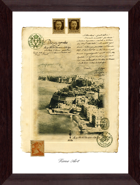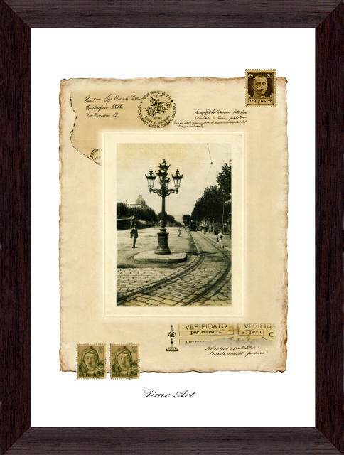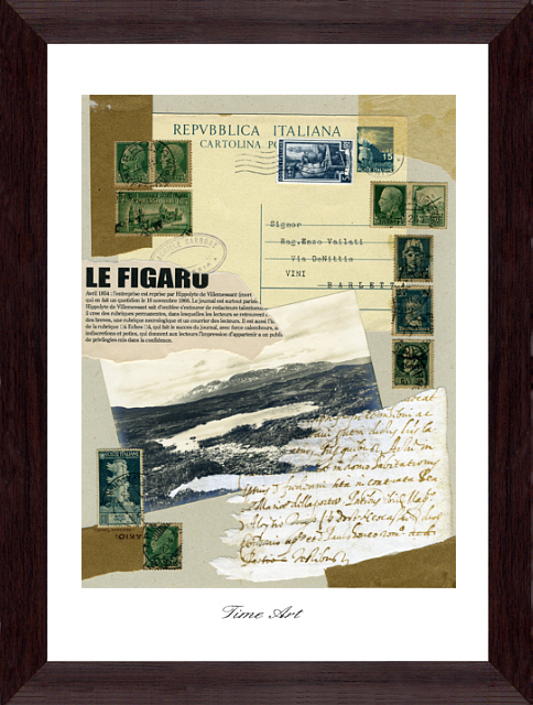 コラージュとは様々な素材の断片をアート作品に仕上がる古くからあるヨーロッパの技法です。ここでは当時の雰囲気を再現した台紙(印刷)に本物の古切手・封筒類の断片・15世紀の古文書の断片などをコラージュしました。高価な骨董品ではなくあくまでアート作品です。使用しいる素材の割合・価値によって価格が違います。「Dシリーズ」は①古切手②古文書の断片が本物で作品によっては封筒類の断片もあります。「Cシリーズ」は①古切手②本物の古葉書。「Sシリーズ」と「Bシリーズ」は①古切手のみ本物でお求めやすい価格になっています。原則として「額装(外寸241×328mm」ですが「内容(A4)」だけでも販売できます。 |
