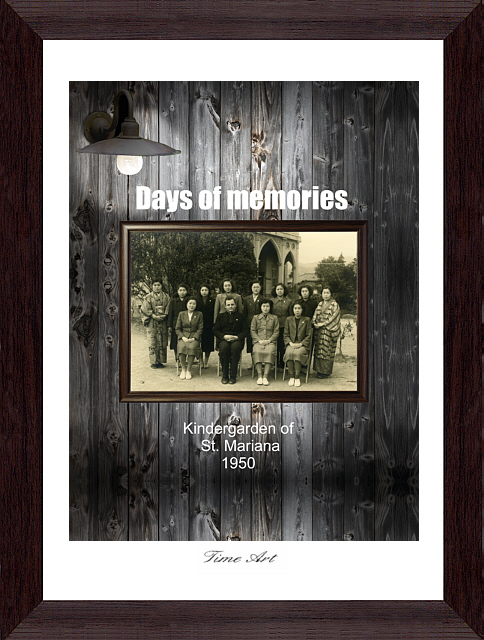 印象的な背景と大切な写真をコラージュすることで、より濃密な世界を創り出します。ギャラリーの各サンプルをクリックで拡大表示。詳細クリックで専用ページが開きます。 →A1型|A2型 →A7型|A8型 → C1型 → C2型 → レトロコラージュ フォトコラージュとは思い出や記念の写真と、それにまつわる背景画像を組みあせる・・・いわば記憶のエキスを凝縮したような作品です。例えば左のサンプルは昭和20年代の小学校の廊下を背景に、入学記念の写真をコラージュしてタイトル文字をいれてポスターのように仕上げた例です。濃密な世界が再現された世界でただ一つのフレームです。ポスターを保護するため完成品は額装(外寸241×328mm」ですが、額不要の場合は「内容」だけのお渡し(配送)もできます。内容のサイズはA4(210×297mm)です。ご注文はメニューから種類を選んで写真を郵送するかデジタル画像を添付メールするだけです。 |
