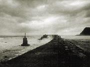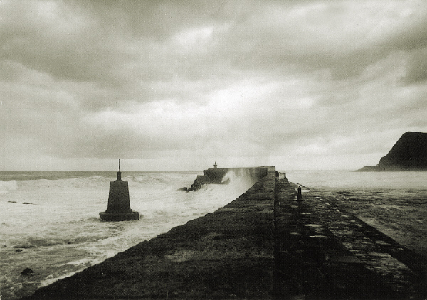 冬の埠頭 - Golfo de Vizcaya -冬のSan Sebastian(スペイン)。どんよりとした空、暗い荒波が叩きつける埠頭に佇んでいつ戻るか判らない情人を待つ黒マントの女・・・映画「フランス軍中尉の女」の一場面です。荒涼の風景は濃密な舞台でもあります。 |