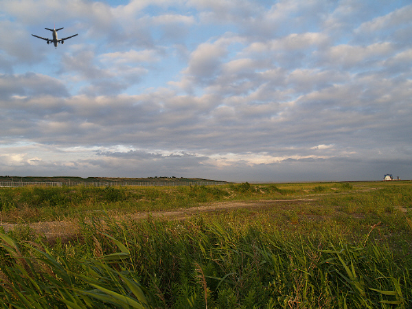 羽田沖 - 人影もない広大な空間は脳を覚醒させる風景です。時折空港に侵入する「翼を広げた怪鳥」の轟音が通り過ぎると、やがてススキが揺れる元の静寂に戻る・・・「探偵団」のバイクだけが到達できる「異空間」です。 |