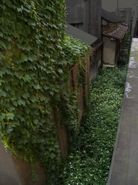 植物の侵略 - 東急都立大 - 建築基準法が生んだ野暮な隙間・・・植物はそんな人間の「甘さ」を見逃しません。かって木々や草を切り払って作られた建物もやがて植物の逆襲にあって飲み込まれる。ビルの谷間には未来の魔境が息づいています。 | ![]() |