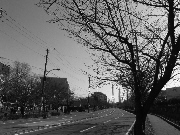 無人の街路 - 久里浜大通 - 人も車もいない道・・・閑静な住宅街の路地ではありません。街の中心から港へ向かう4車線の大通りです。何の変哲もない街が突然見せる「空白の時間」・・・タイムトリップしたような透明な官能に満たされます。 | ![]() |