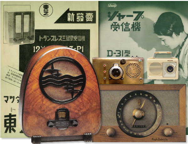 昔のラジオ - 真空管の官能 -テレビがない時代、ラジオは日常と「外界」を繋ぐ妖しの装置・・・遠洋漁業基地でもあった港町ではNHK第二の「天気概況」を聞くことが多く、あの独特の話し方が子供をうっとりさせます。真空管ラジオはスイッチを切ってもしばらく音が消えず、まるで生きものでした。図面と格闘しながら3ヶ月かけて組み立てた「5球スーパーヘテロダイン」のスイッチを入れて聞こえてきた異国の放送・・・あの興奮は今も「ラジオ少年」の濃密な記憶です。 | ![]() |