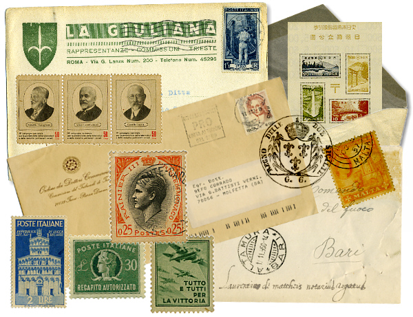 古い手紙と切手 - 異国の断片-空想少年を虜にする外国郵便物・・・得体の知れない文字や見たこともない切手が遠い異国の断片に見えて子供をうっとりさせます。「切手少年」にとって外国切手は異国への小さな「窓」・・・精密に描かれた風景や人物を飽きずに眺めていたものです。 | ![]() |