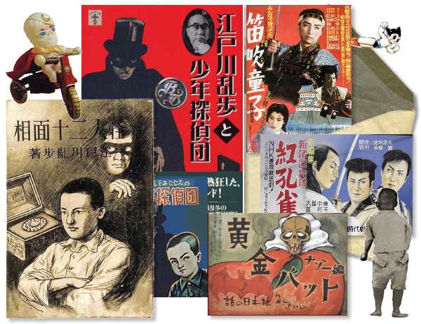 少年探偵団モノ - 子供の原点-我々「少年探偵団」の原点、必須アイテムでもあります。黄金バット、笛吹童子、月光仮面、怪人二十面相・・・テレビが登場すると怪傑ハリマオや鉄腕アトム・・・紙芝居から始まってラジオ、テレビと時代を駆け抜けていったヒーロは今も記憶の片隅で活躍中です。何か成長が止まっているのでしょうか。 |